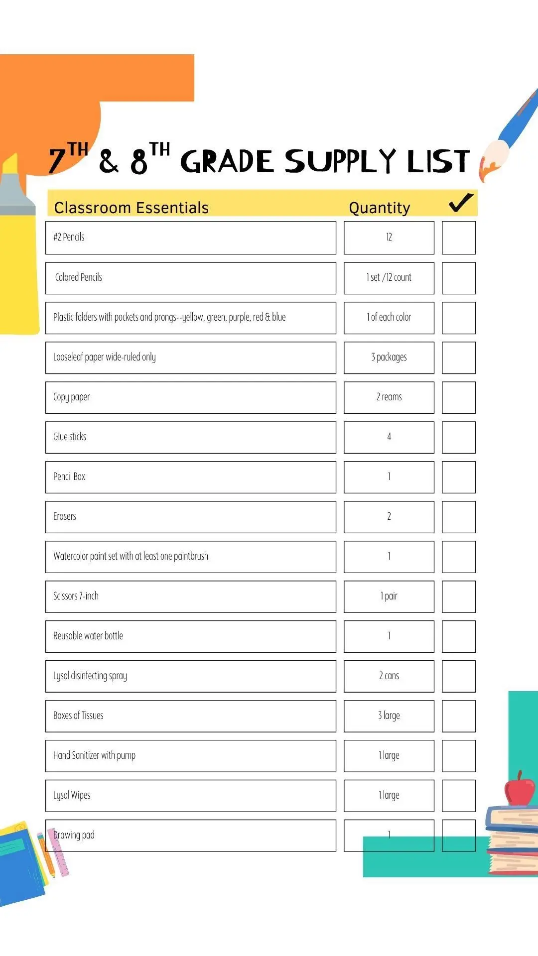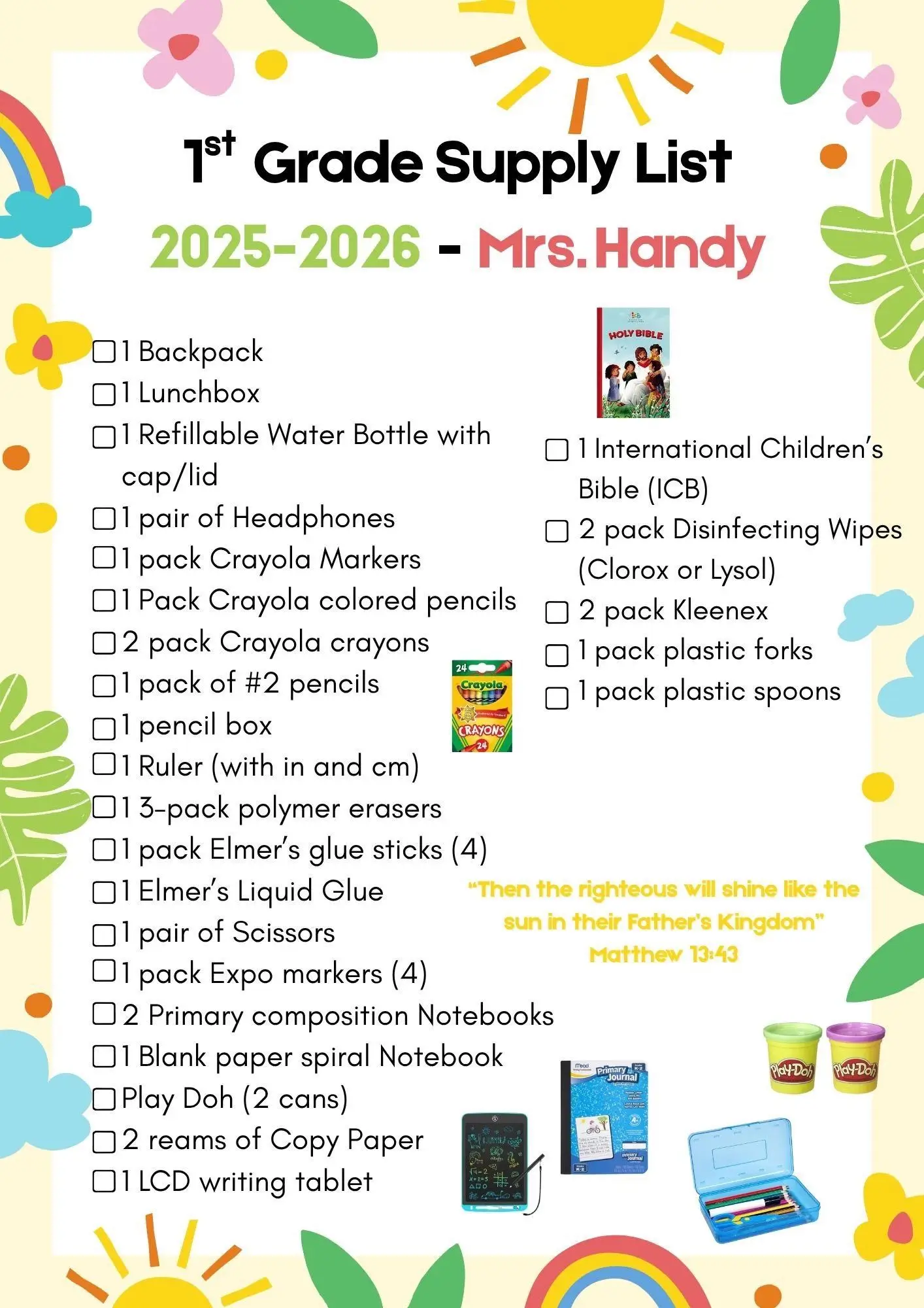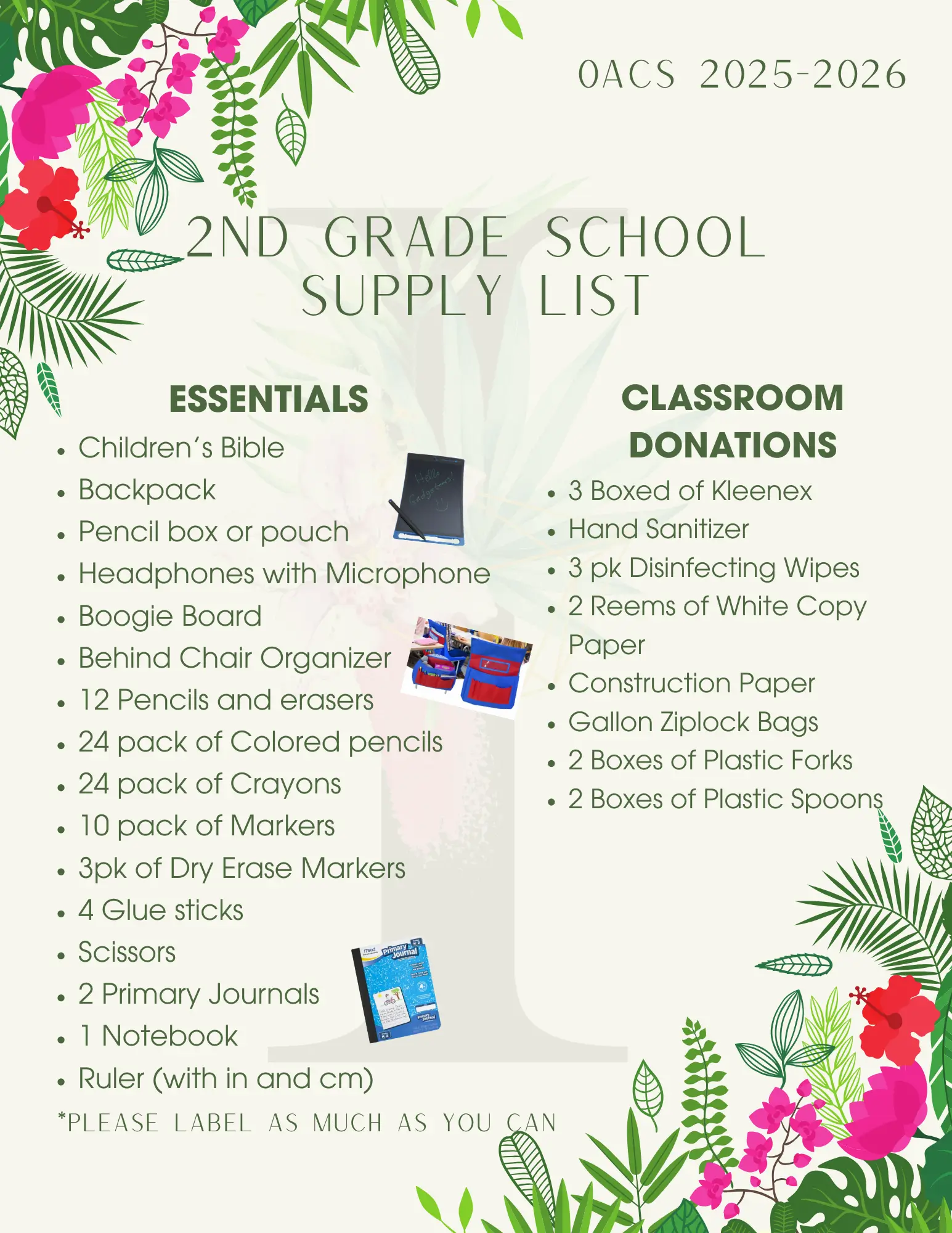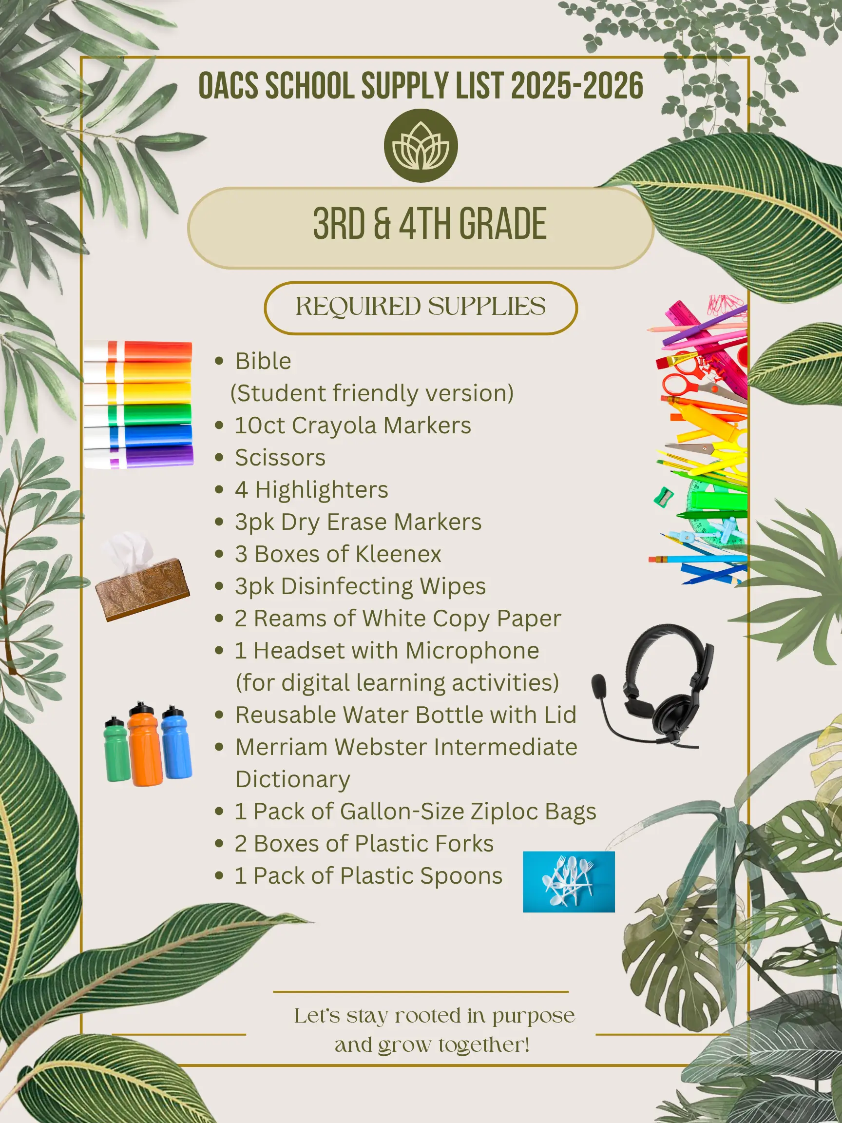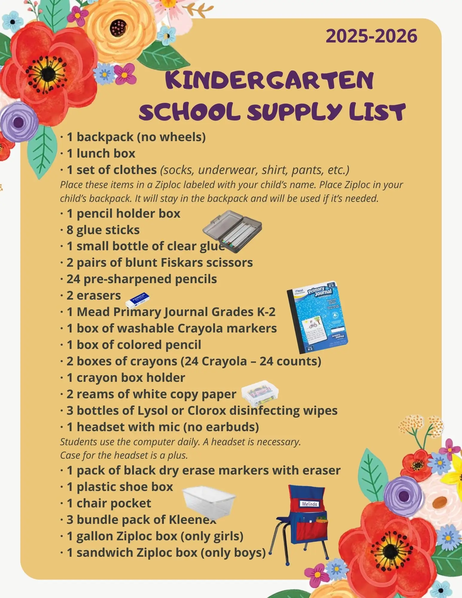 Parents / Students Quick Links Click Your Selection ClassLink Launchpad Login Microsoft 365 Login Adobe Creative Cloud Login School Uniform Info Disaster Preparedness Plan Volunteer Background Check Class Supply Lists "Click" the buttons below to download the school supply lists for all grades. VPK Supply List Kindergarten Supply List G1 Supply List G2 Supply List G3 & G4 Supply List G5 & G6 Supply List G7 & G8 Supply List SUPPLY LISTS Calendar 2025 - 2026 School Year Major Dates Download Calendar Here